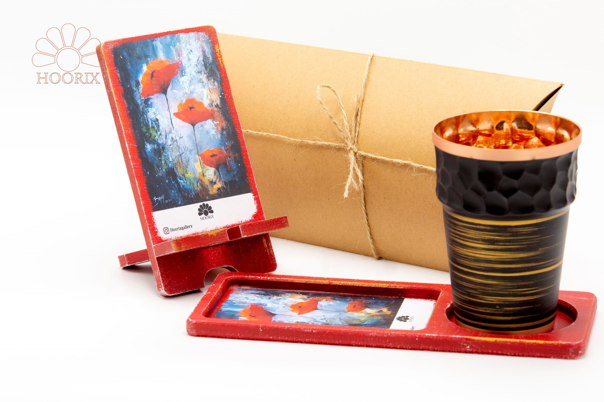 ست استند موبایل و زیر لیوانی با طرح، رنگ و لوگو مورد نظر شما قابل طراحی است.