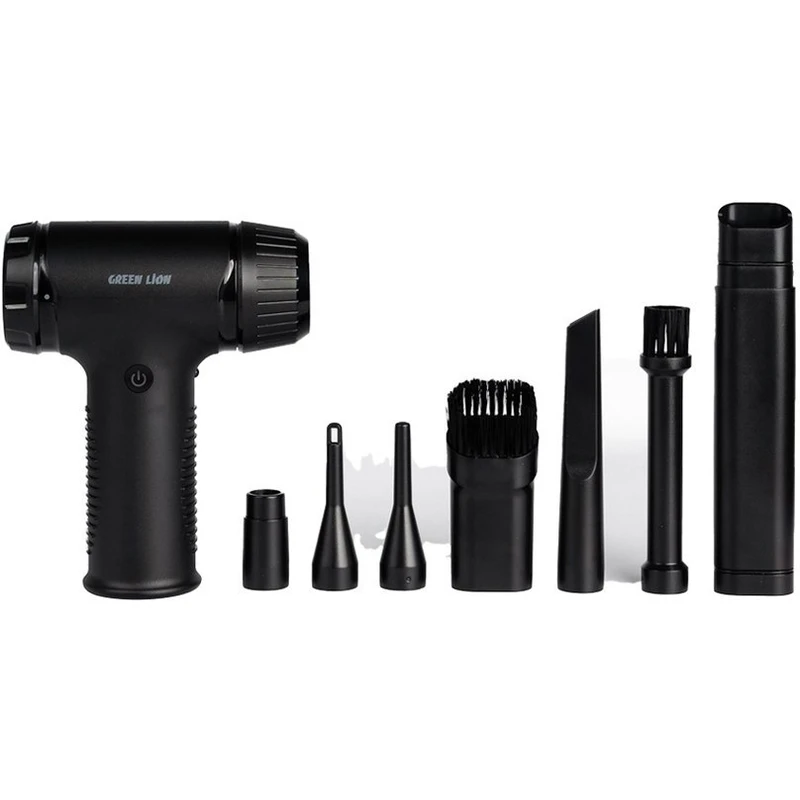 7 سری مختلف داخل جعبه میتوانید 7 سری مختلف که هم کاربرد مکنده و هم باد را دارند مشاهده میکنید، برای انواع سطوح و انواع اجسام مثل سری مجهز به جارو برای تمیز کردن سطوح آغشته شده به گردغبار به کار میرود. طراحی و جنس بدنه جارو شارژی گرین Green Lion 2in1 طراحی به شکل تفنگی دارد که برای استفاده بر روی سطوح غیرقابل دسترس مانند درز ها بسیار کارآمد است، جنس بدنه این جاروشارژی از پلاسیتک (ABS) ساخته شده و مقوامت خوبی در برار ضربه دارد.