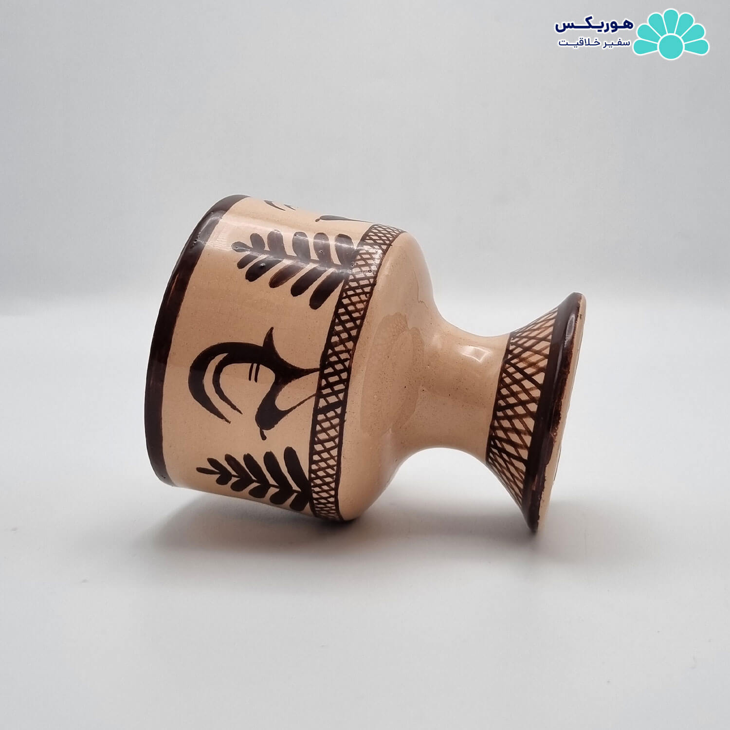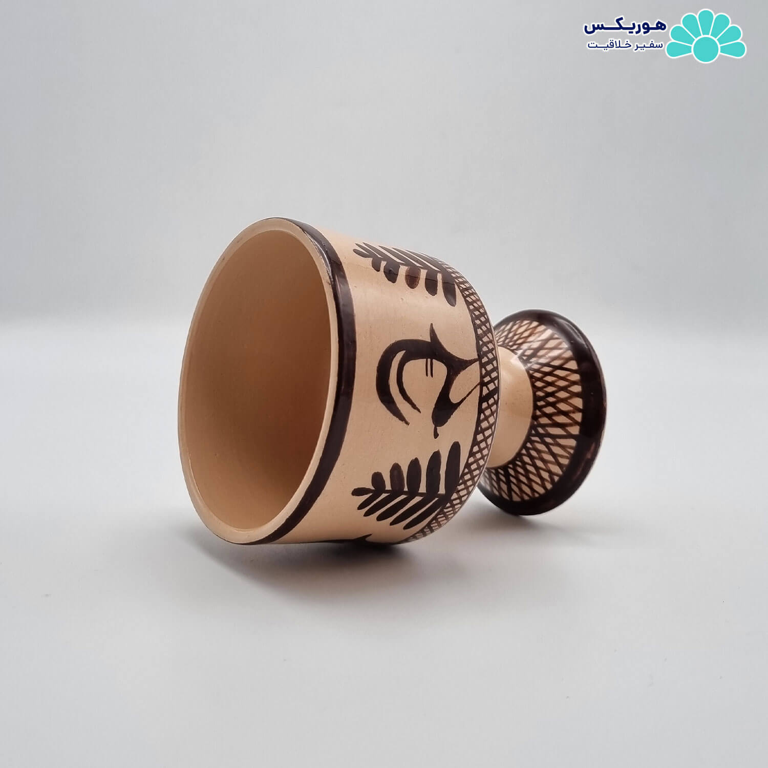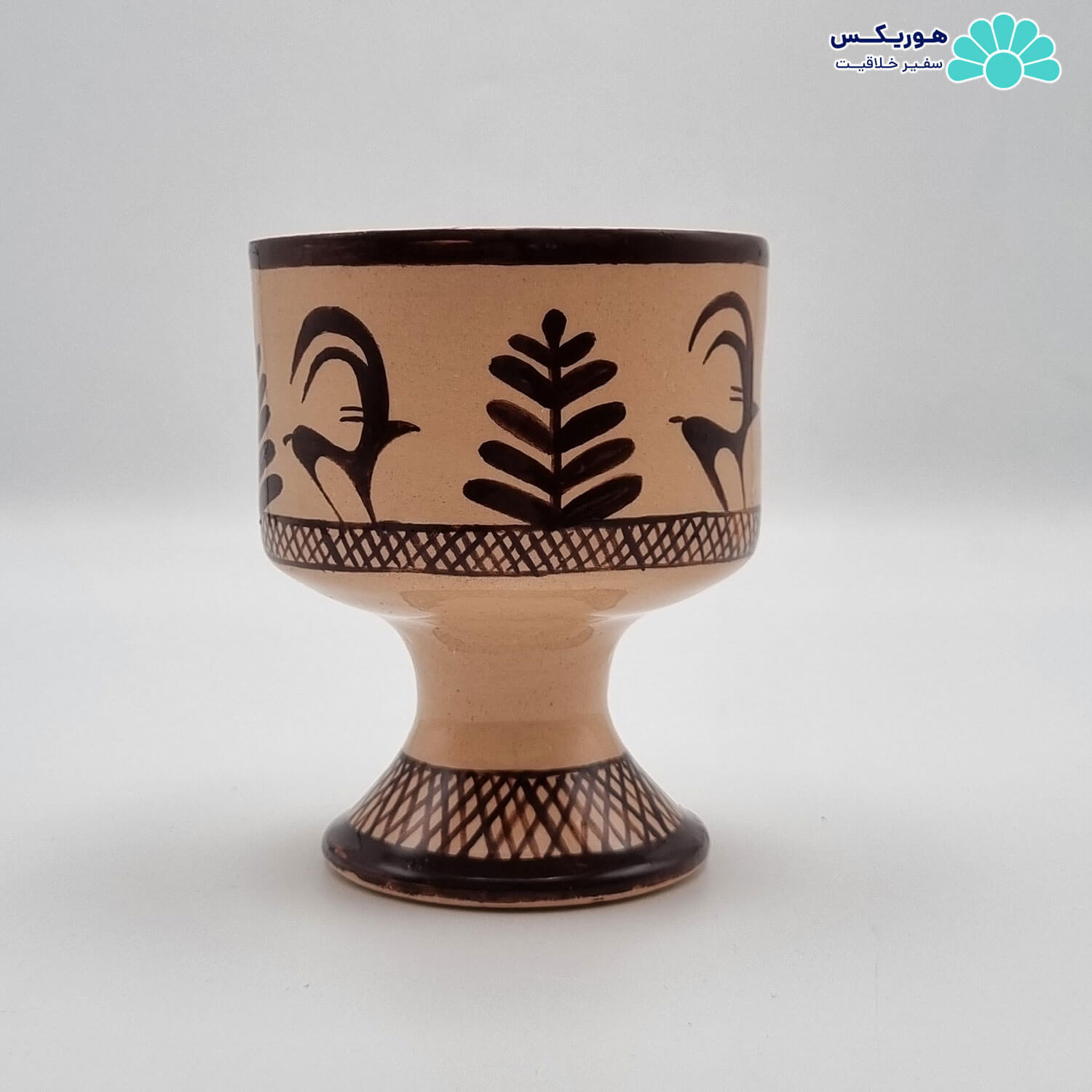جام پایهدار متوسط سفالی طرح گوزن لبه رنگی