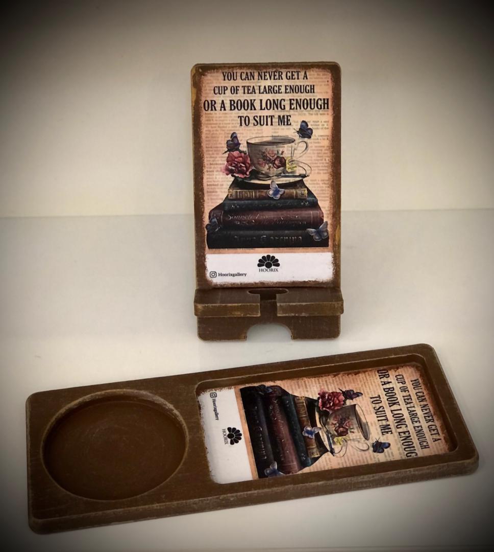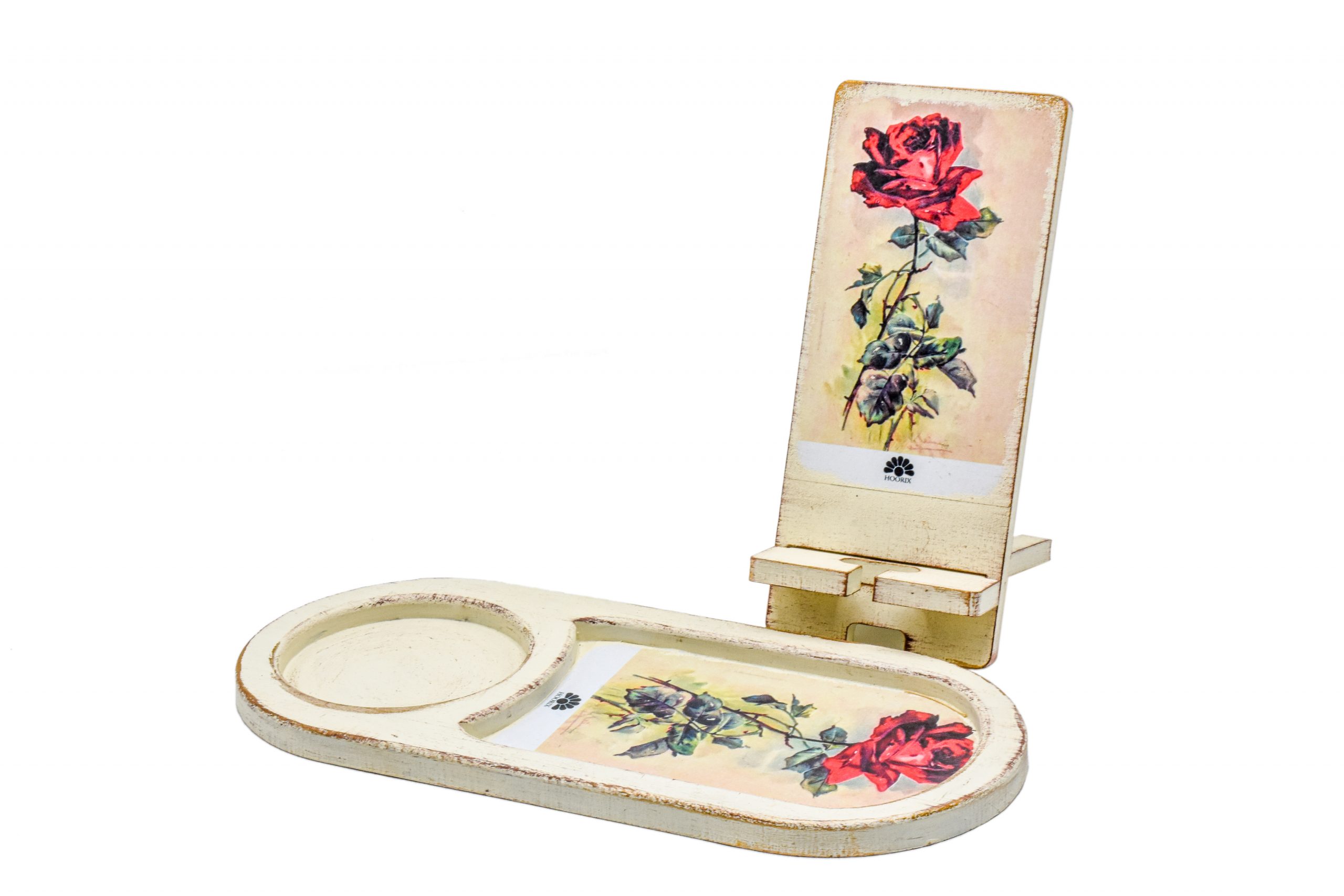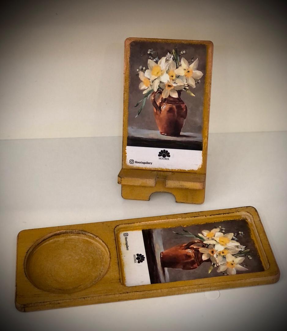 ست استند موبایل و زیر لیوانی در طرح ها و رنگ های متنوع ساخته شده با سبک دکوپاژ و پتینه یک وسیله بسیار کاربردی در محل کار و منازل شما