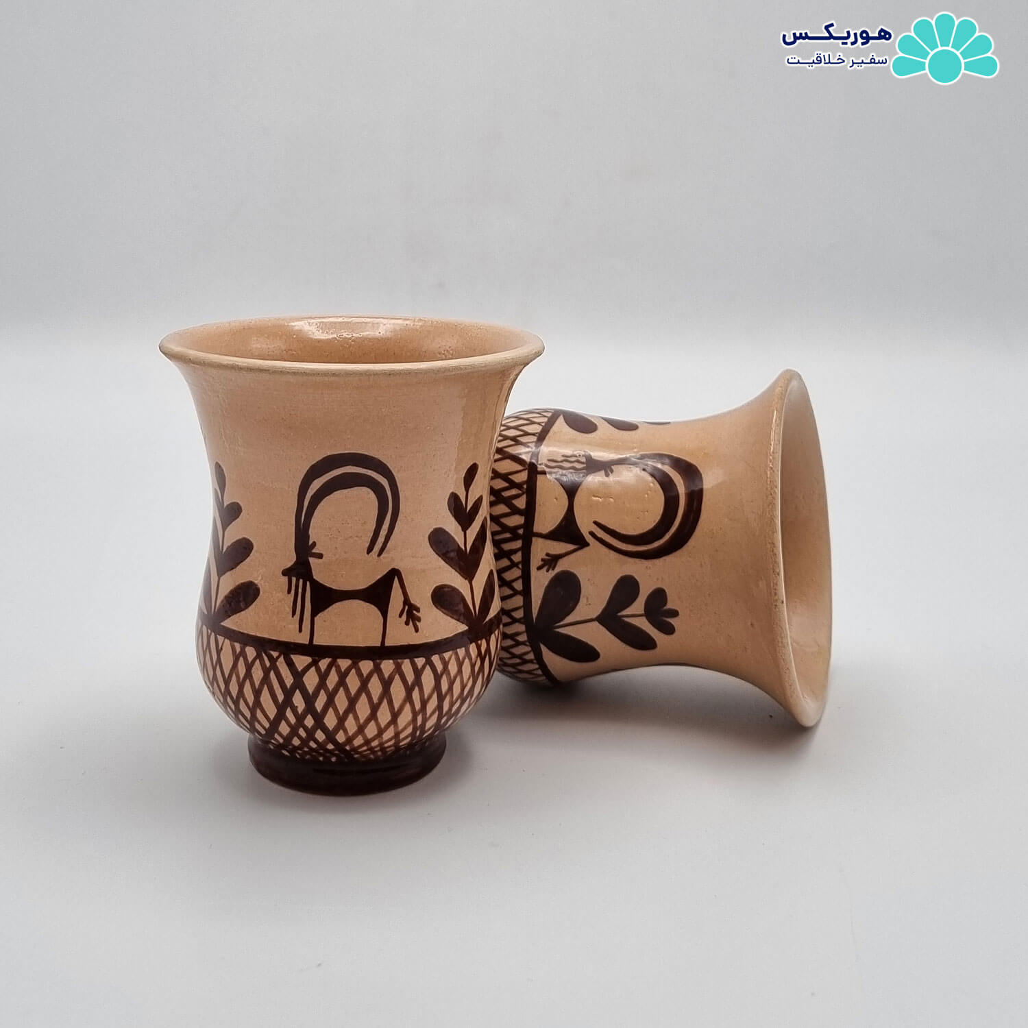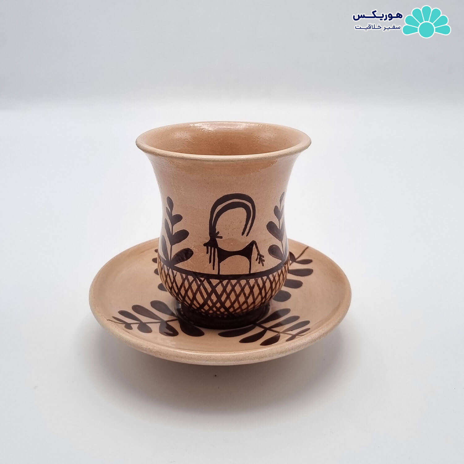 فنجان کمر باریک و زیر استکان سفالی